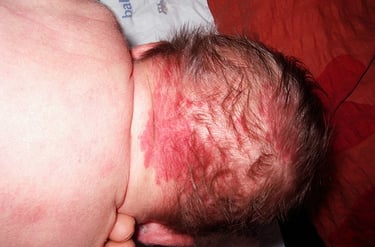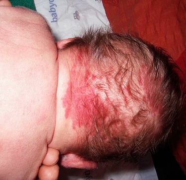 also known as salmon patches, are common birthmarks found on newborns, typically appearing as pink or red spots on the back of the neck, between the eyes, or on the forehead. These usually fade over time and often disappear by early childhood.