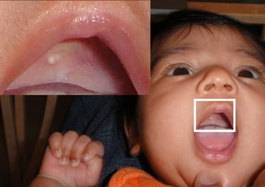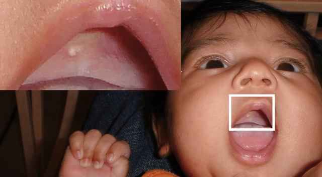 are small, white or yellow cysts that appear as tiny bumps on the gums or roof of the mouth of newborns. They're considered harmless and tend to vanish within a few weeks or months after birth.