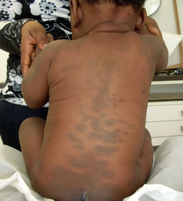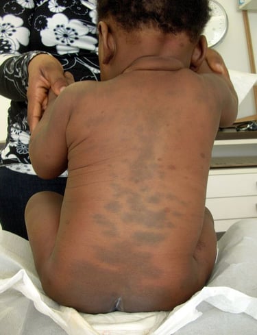 are flat, bluish-gray patches that are typically seen on the lower back or buttocks of babies. They're more common in infants with darker skin tones and usually fade away as the child grows older.